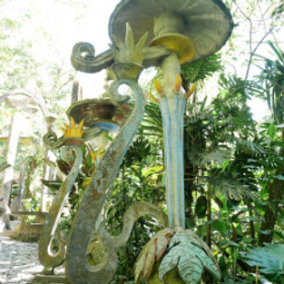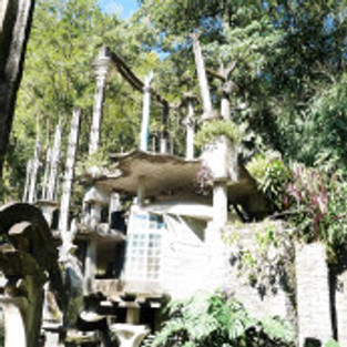 But we were coming to see in addition to the natural beauty, was it something quite unnatural. A man named Edward James built an extremely strange creation called Las Pozas on about 80 acres of jungle property. It is more than 2000 feet above sea level in a sub tropical rain forest. It has natural waterfalls and pools interlaced with surrealist sculptures made of concrete. Edward was a patron of the arts, and he clearly had more money than he needed. He had at one time, the largest collection of surrealist art in the world. He sold his collection in order to have about $5 million to build about 25 surreal concrete structures built between 1949 and 1984.
